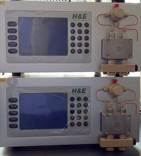 柱塞泵是目前液相色譜主流的輸液單元,特別是雙柱塞往復泵。它有一個精心設計的偏心凸輪,用同步電機或變速直流電機驅動偏心凸輪,偏心凸輪再推動兩活塞作往復運動。偏心凸輪短半徑端所對應的活塞向外伸,使該活塞的下單向閥打開吸入流動相,與此同時,偏心凸輪的長半徑端所對應的另一活塞被推入,使其上單向閥打開,并將流動相送至色譜柱。具有操作方便、流速穩定、壓力脈動小、故障率低的優點。根據流量大小一般可分為分析型和制備型。