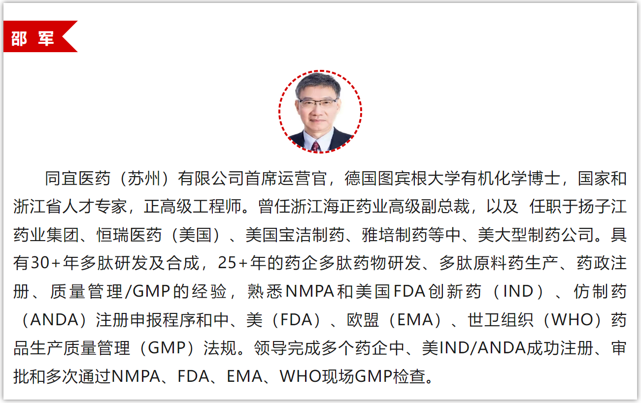 11:10-11:40 | 吳海剛 | 多肽API供應鏈的機遇和挑戰 | |