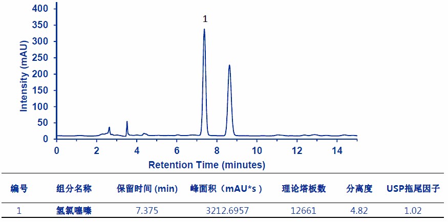 ????珍菊降壓片的修訂涉及氫氯噻嗪、蘆丁的含量測定,鹽酸可樂定的含量測定和蒙花苷的含量測定。默克應用實驗室根據2015版藥典對這些檢測項目的技術要求,推薦的解決方案如下。