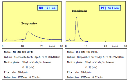 此次,富士硅化學有限公司新研發出氨基鍵合相的PEI硅膠。相對于NH和DNH硅膠,PEI硅膠更適合于分離強堿性的化合物。