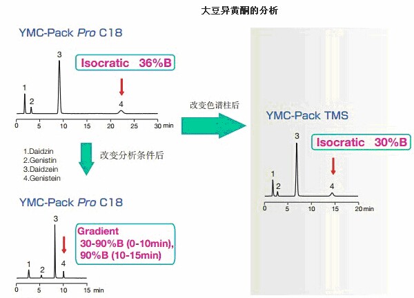 使用TMS色譜柱對疏水性波動大的化合物進行分析時,可大大縮短分析時間。