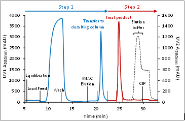 ??在該過程中,IMAC的洗脫組分同樣直接上樣至脫鹽柱,節省了純化時間。
